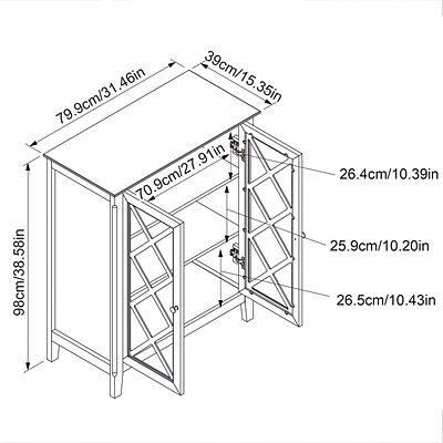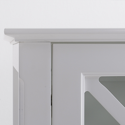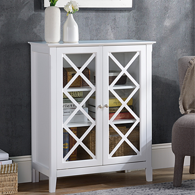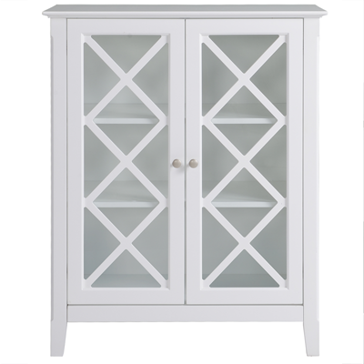 This elegant cabinet is sure to make a statement in any room. Two adjustable shelves esure plenty of space for storage. Cross pattern window panes give this cabinet an upscale look. Available in both white and light gray finish.